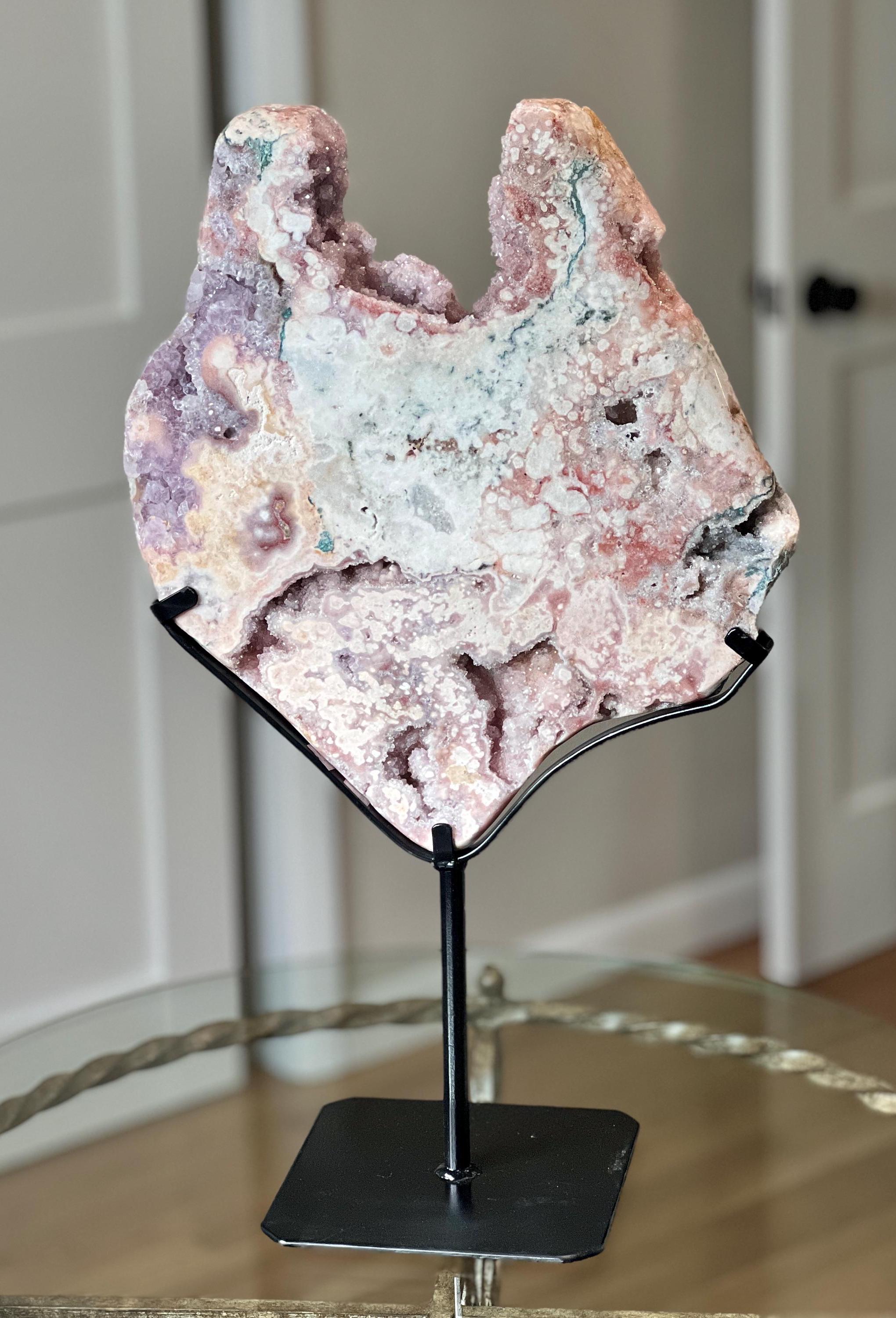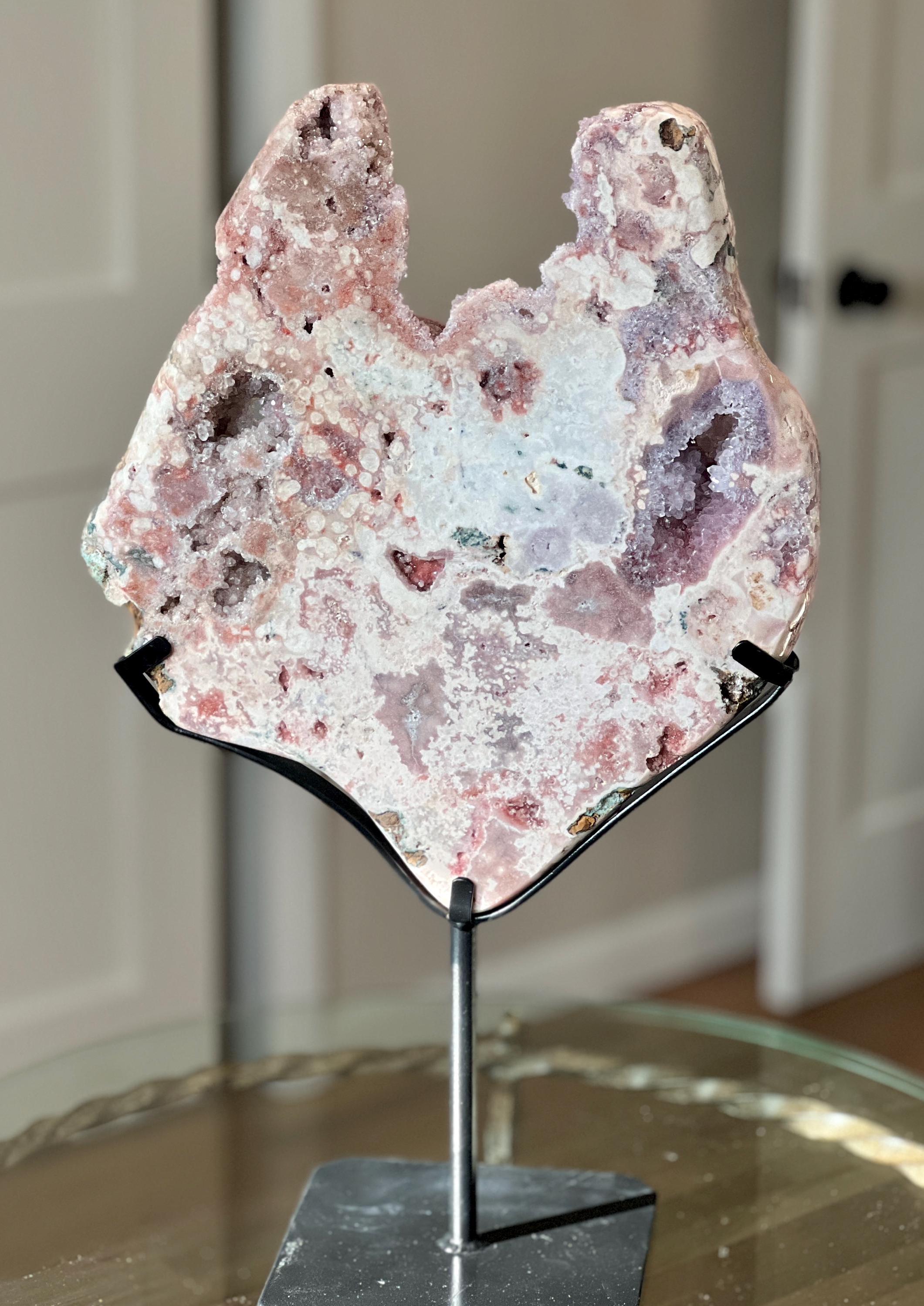 XXL Druzy Purple Pink Amethyst Slab on Stand