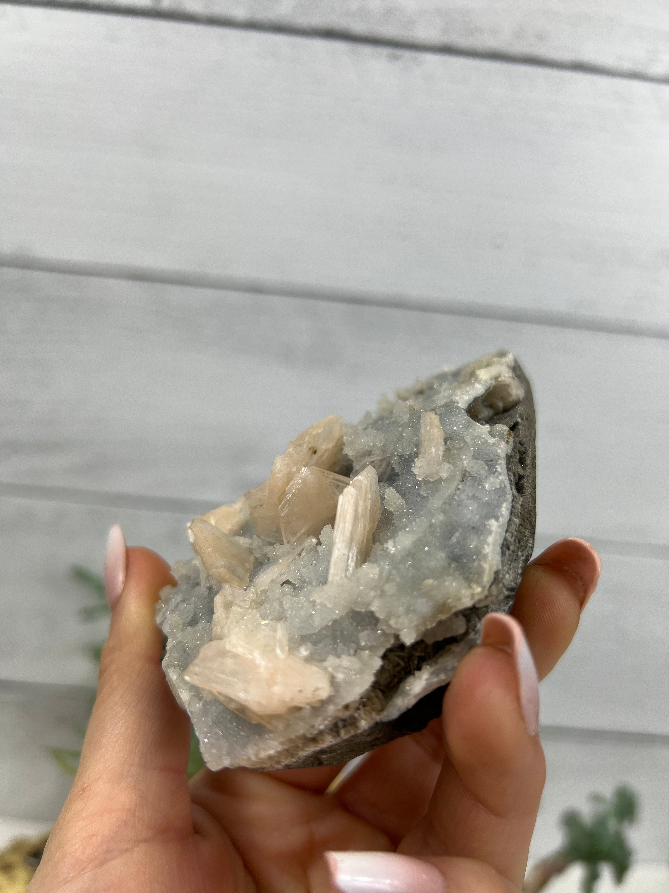 Druzy Blue Chalcedony with Peach Stilbite
