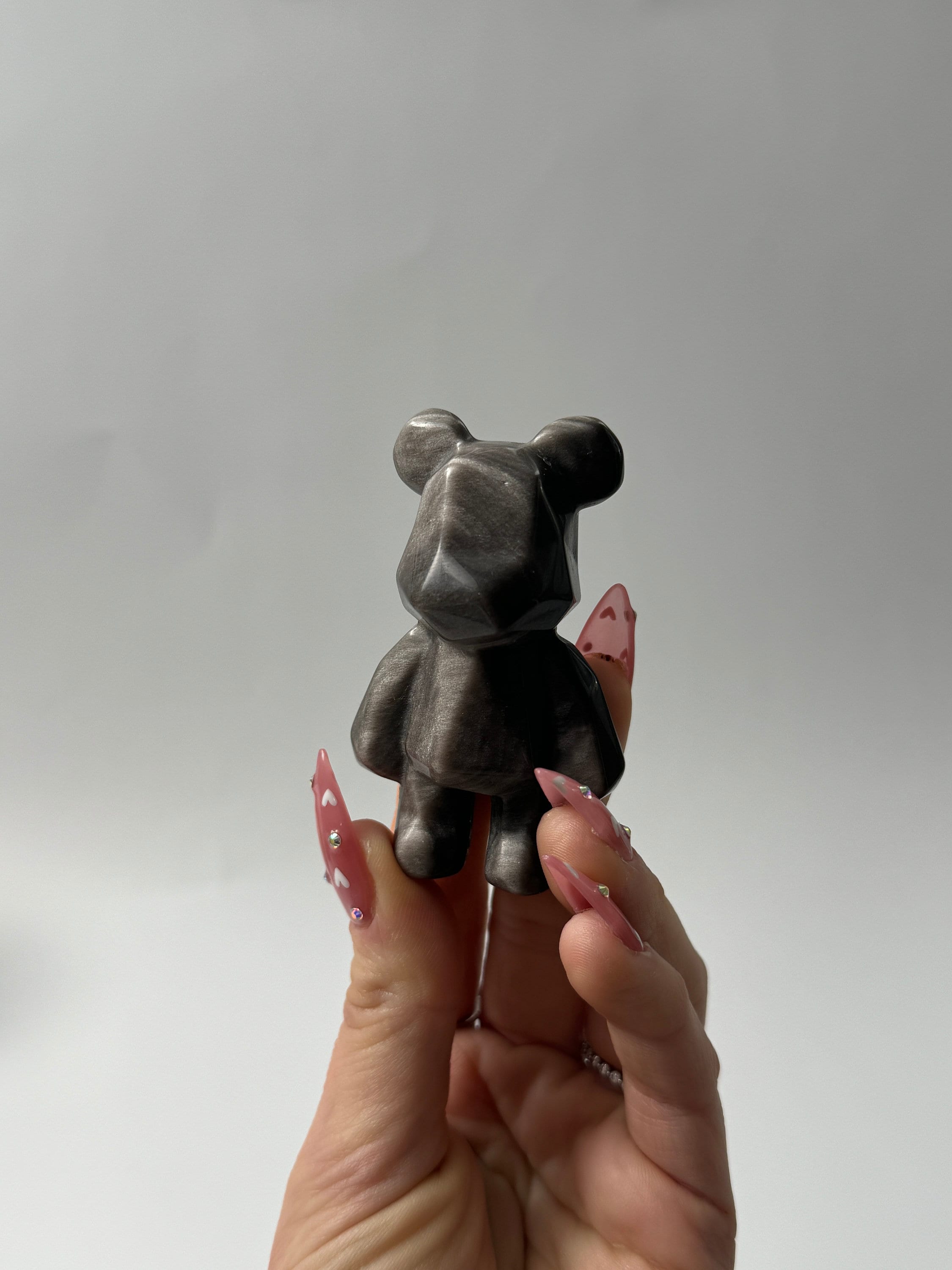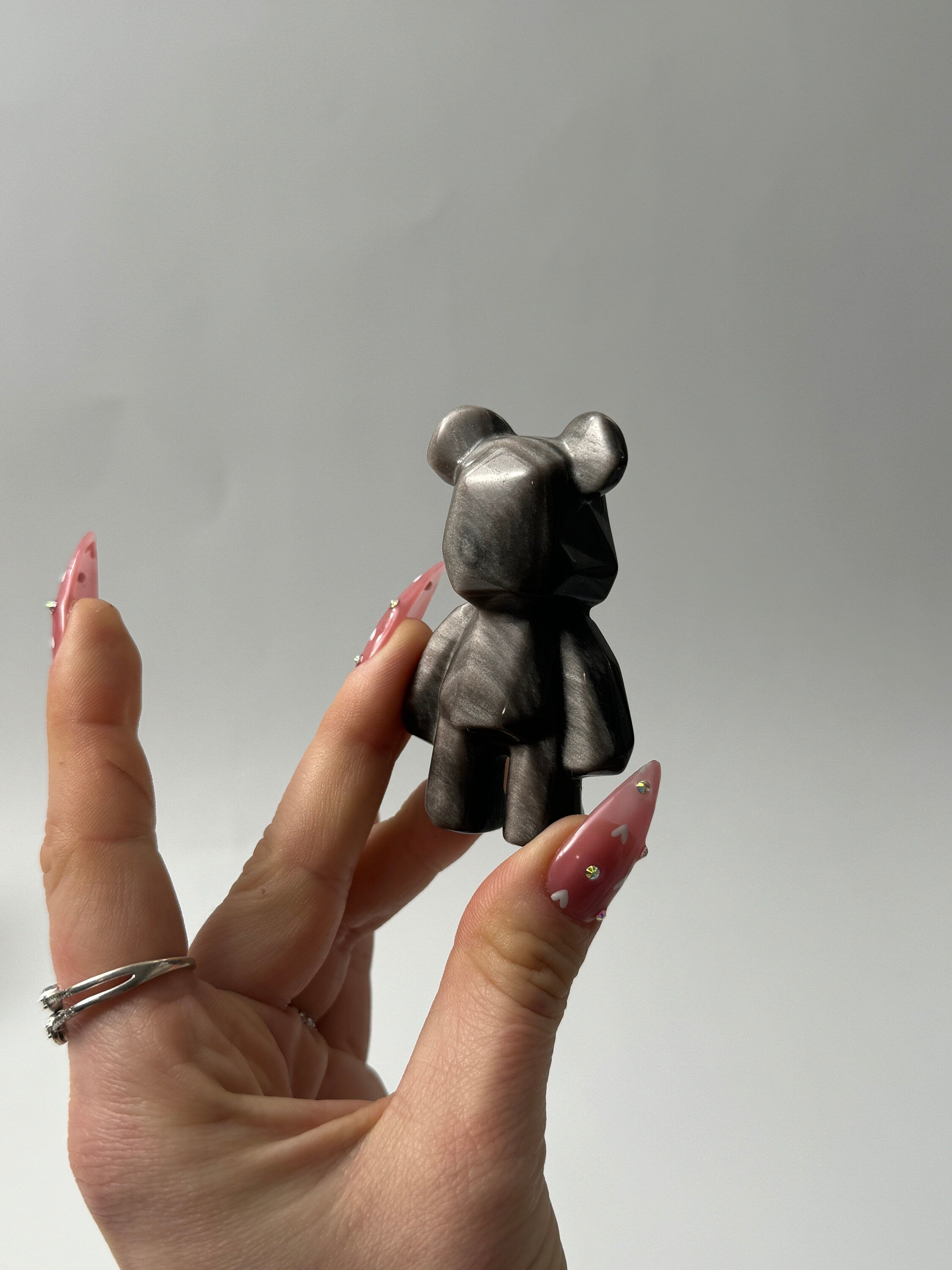 This listing is for one faceted silver sheen obsidian bearbrick carving which stands at 2.7” tall!