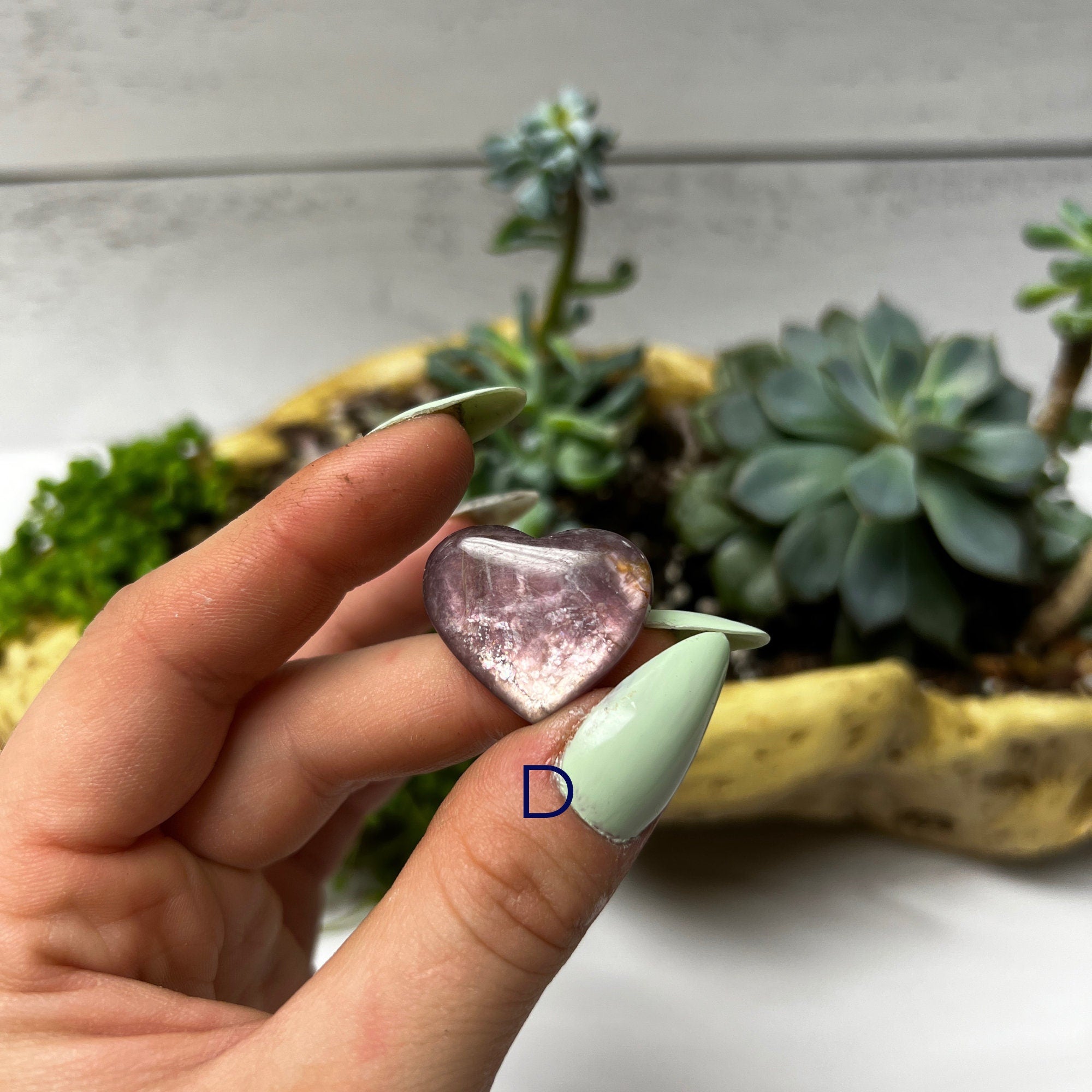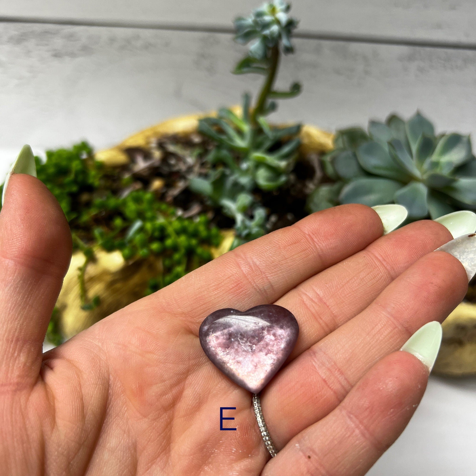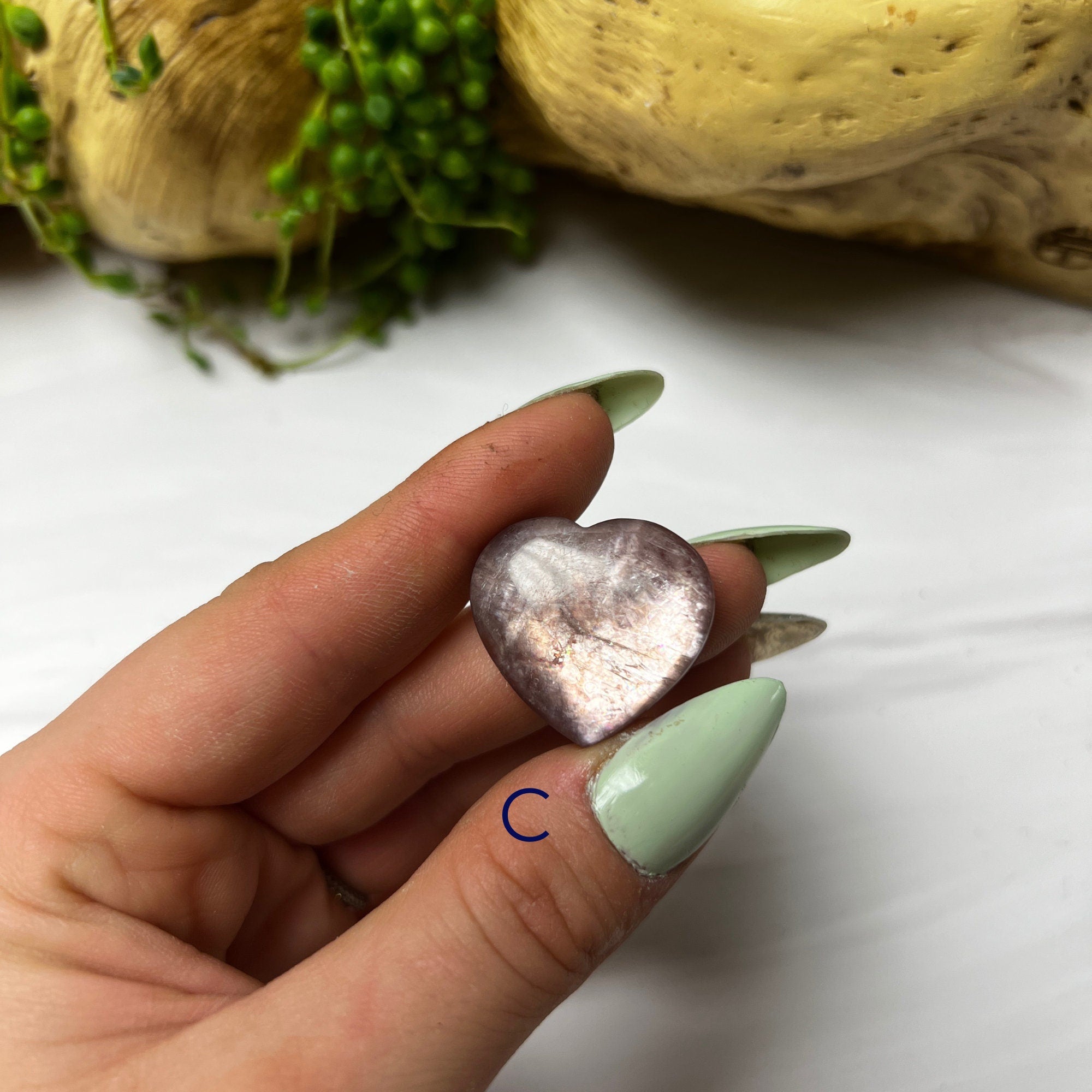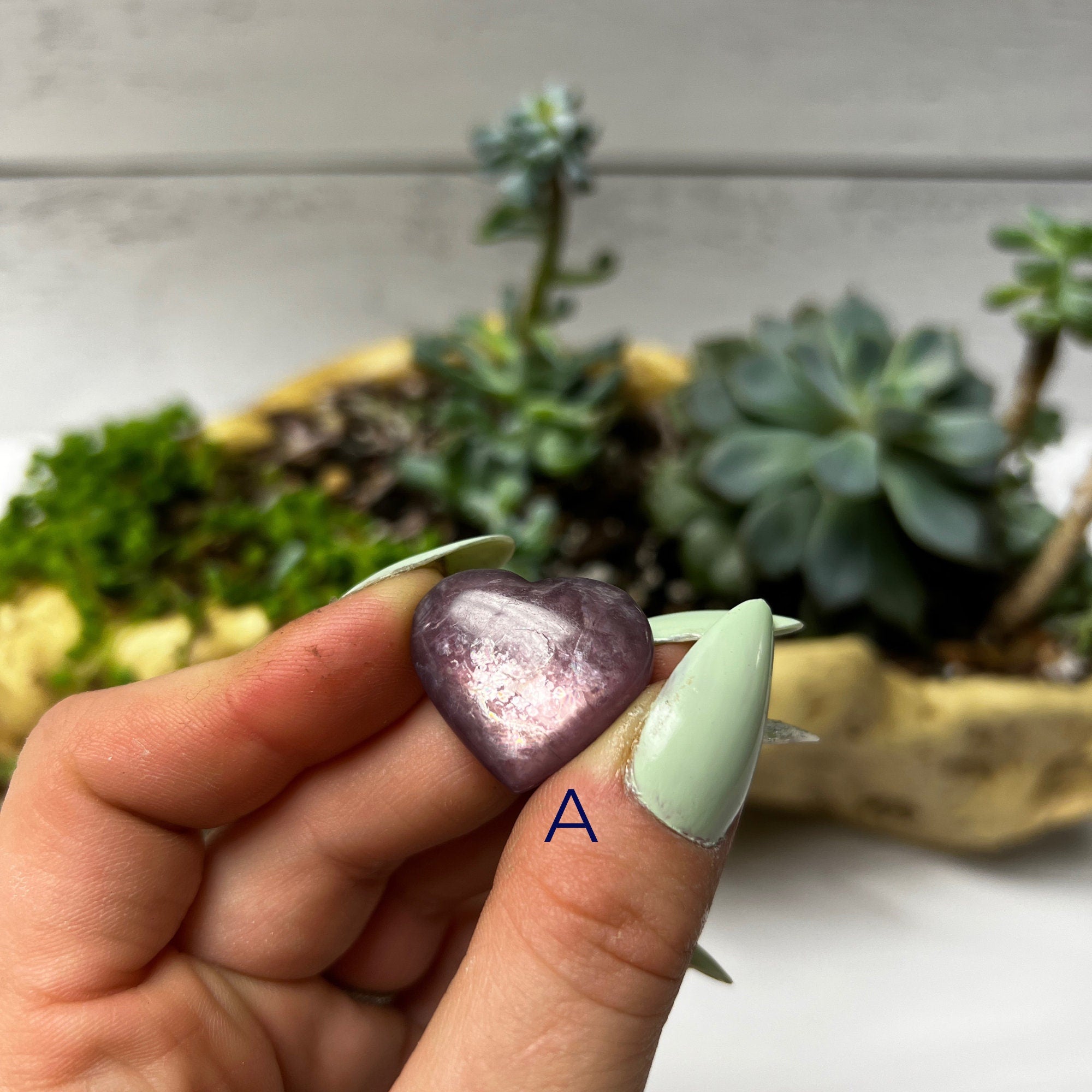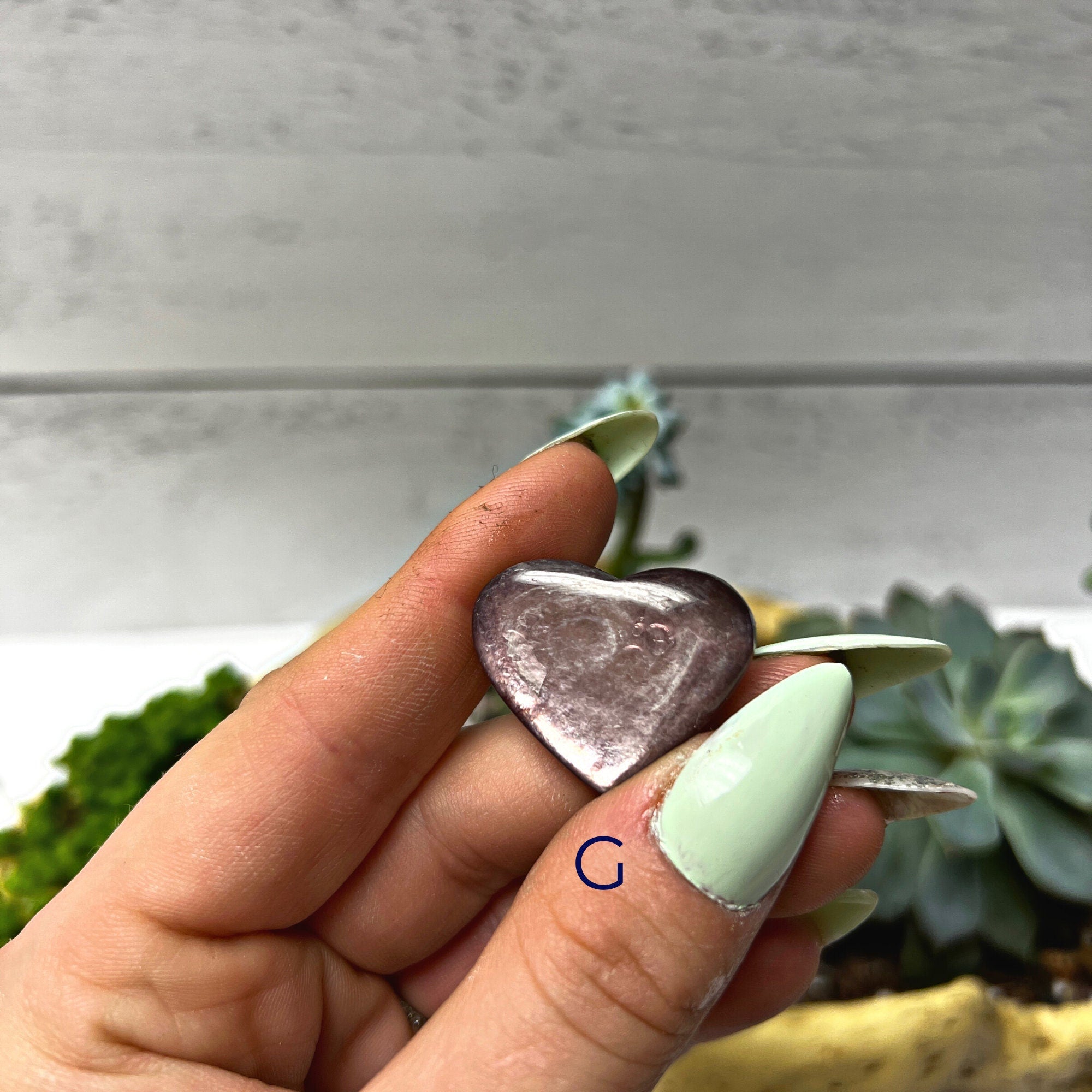 These extremely flashy lepidolite heart carvings are STUNNING!