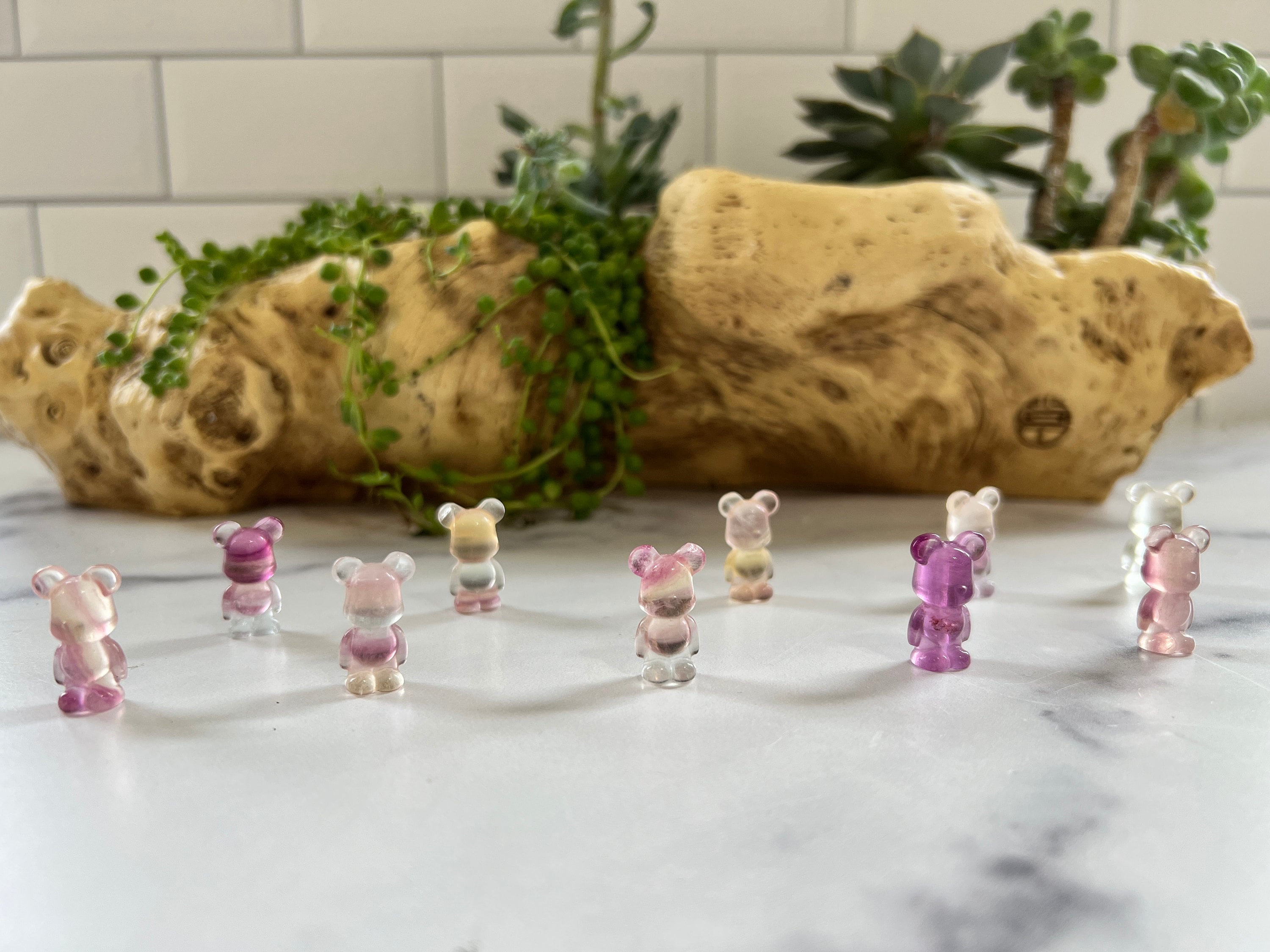 Rainbow Fluorite “Bearbrick” Bear Carving Crystals